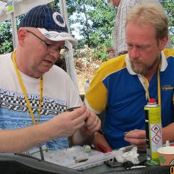 Årets första semestertävling blev en lugn och avslappnad tillställning med ett toppenväder därtill. Lördagsträningen började med ett skumt väder vilket gjorde att flertalet bränslenålar justerades i någon riktning. Deltagarantalet var inte så stort och vissa kombatanter var där för att förvissa sig om att allt var i sin ordning innan resan till EM i Hannover. Fick man inte de svar man önskade så finns ju GMBK:s sommartävling den nu 21-22 juli för att räta ut vissa frågetecken inför EM. Resultaten hänvisar jag till listan. Helgens stora begivenhet var helt klart Mats Böhlin:s 10cc-körning som placerade honom högt på årets världsranking. I 10cc kan vi nu se att Lars Wahlund börjar bli säker över 30-strecket vilket gör att han borde ingå i Swedish Team på EM. Jan-Erik Falk presterade vad vi förväntar oss i 5cc men i 3,5cc haltar det lite just nu. Däremot så har Ulf Ek nu börjat nosa på riktiga 5cc resultat om han nu inte trycker på knappen för tidigt, som i första racet. Kenth Jansson i 3,5cc räknar vi med ska toppa på EM nu när han börjat hitta inställningarna. Richard och jag fick inte till någon topp nu men det är bara att riva ner och börja om. Richard har vilat ”snabben” inför EM och räknar då med att göra ett bra resultat. Boris Åström visade upp sin nya skapelse som Agustyn Vegera knåpat ihop och som vi nu hoppas mycket på. Åke Ekstrand är nu ganska ohotad i 1,5cc-klassen för tillfället med ännu en bra körning. Ja nu väntar då EM i Hannover som verkar bli ett av dom större på senare år, med många deltagare. Även om jag inte förväntar mig långt upp i prislistan så är det en otrolig social upplevelse att få vara med i denna atmosfär och träffa linbilsfolket i europa. Nä, tillbaks till ”workbench” och jobba på.
