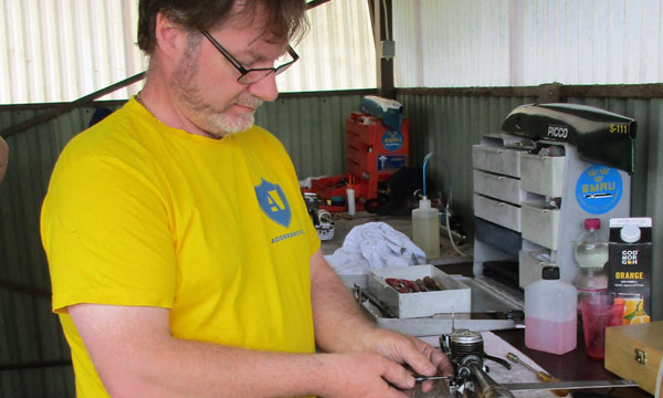 Boris fina körning på ”Brommakannan” ville inte upprepa sig denna helg. I 5cc verkar Uffe Ek nu hittat läget en bra bit över 290-strecket och tog 1:an. Anders ”rosa” Picco-femma drog iväg så pass att han blev lite impad tror jag. Hans införskaffade ryssfemma har inte hittat rätt ännu. Det som lyfte lite på ögonbrynen var väl Håkan Ehn:s comeback 5cc med en s-k. blåslampa och där tog han 3:an GRATTIS! Nu stundar väl ”Grand Slam” i Tallinn där några svenskar är med. Till EM i Pécs åker Jan-Erik Falk, Nils Björk, Kenth Jansson och Richard Helander. Man kan nog räkna med en smärre värmebölja därnere men dom har väl kall öl.